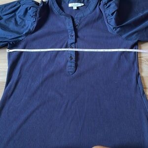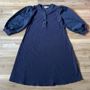 Chico’s Puff Sleeve Henley Dress Navy Partial button up Size 12 (Chico’s 2)
