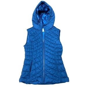 Stay warm and stylish with this blue quilted hooded vest. Perfect for layering in cooler weather.