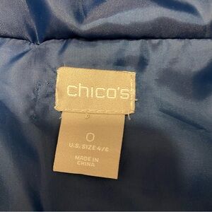 Chico’s Puffer Quilted Hooded Vest Size S Blue Full Zip Pockets Outdoor Fall
