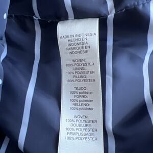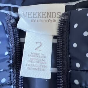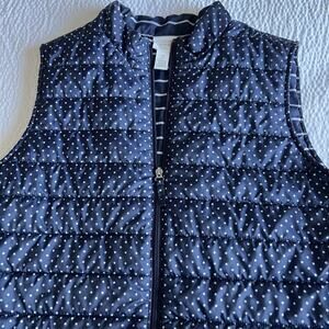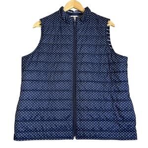 Chicos Puffy Vest Large Navy Polka Dot Quilted Full Zip Pockets Nautical Beach
