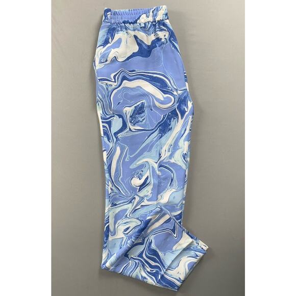 This sharp looking pair of pants by Chico's comes in a beautiful and unique blue swirl pattern. They are in mint condition with super crisp color/fabric, and no noted defects of any kind. These look new. I encourage you to use the photos to inspect them from all angles, and think you'll agree that this is a beautiful piece of clothing that will make an excellent addition to your wardrobe!
