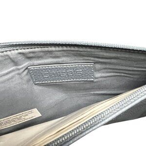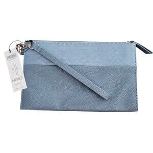 Chico's Pull Tie Zipper Wristlet Accessory Promo Blue Faux Leather 8.5" (NWT)