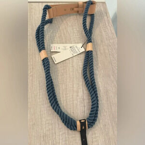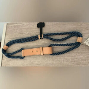 Chicos Pull-Through Rope Belt Blue Leather Detail Nautical Coastal Medium NWT