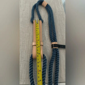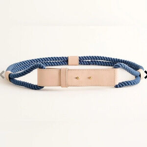 This is a listing for a preowned, tags still attached, Chicos Pull-Through Rope Belt Blue Leather Detail Nautical Size Medium NWT. Great condition. Please see all photos for details as they are part of the description.