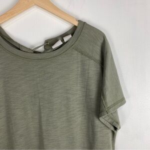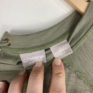 Chico's Pullover Lagenlook Lace Up Back T-Shirt Mini Dress Olive Green Size 2