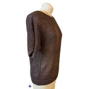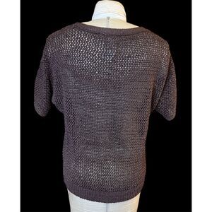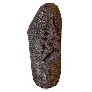 Beautiful pullover open knit sweater by Chico’s. Shimmer metallic threads make this sweater special. The color is a deep brown espresso.