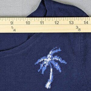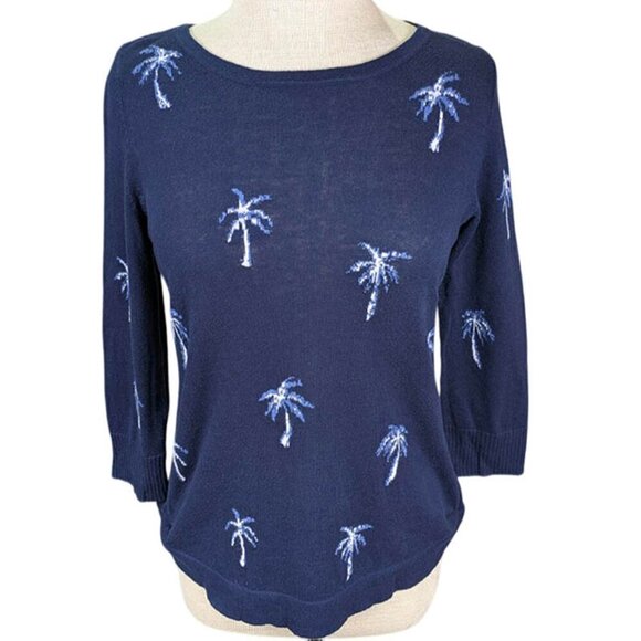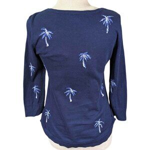 Chico's Pullover Sweater Size 0 Womens Small 4 Blue Palm Tree Design 3/4 Sleeve