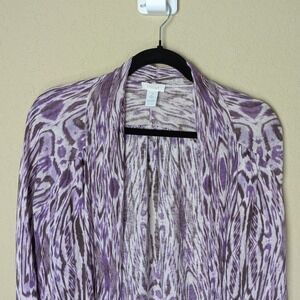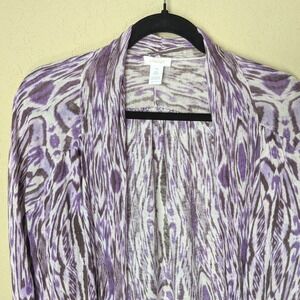 Chico's Purple Animal Print Open Front Cardigan Size 2 (M/L) Lightweight Drape