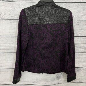 Chicos Purple & Black Zip-Up Jacket With Textured Pattern, Size Small