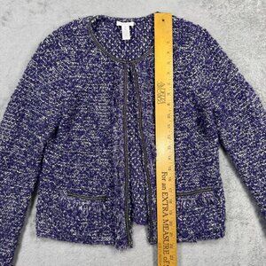 Chicos Purple Bouclé Tweed Cardigan Metallic Textured Knit Chic Coquette
