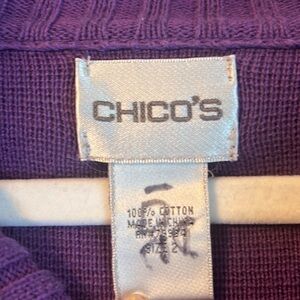Chico’s Purple Button Front Cardigan sz L 12/14 vanity sz 2. 100% Cotton casual