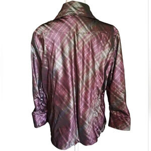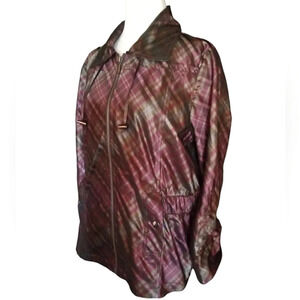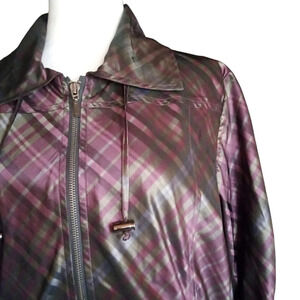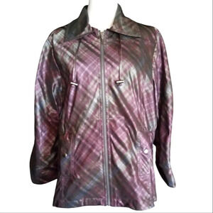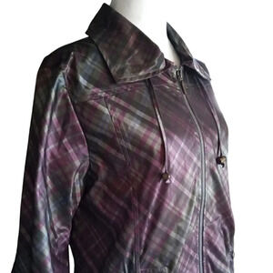 Chico's Purple Green Plaid Zip Front Jacket Pockets
