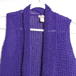 Chico's Purple Open Knit Open Front Sleeveless Cardigan Boho Size Small