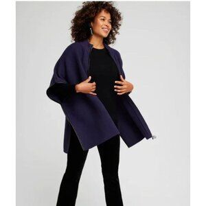 Chicos Purple Ruana Poncho Cape Sweater Zip Front Faux Leather Accent Trim S/M