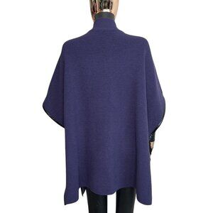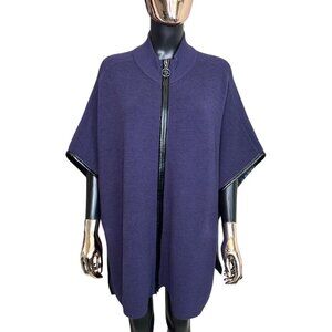 Chicos Purple Ruana Poncho Cape Sweater Zip Front with Faux Leather accent trim size S/M.