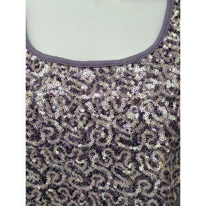 Chicos Purple Sequin Tank Top S Jersey Cotton Blend Sleeveless Scoop Neck Sparkl