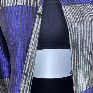 Chico’s Purple & Silver Colorblock Womens Open Front Jacket 3/4 Sleeve Sz 2