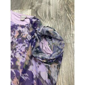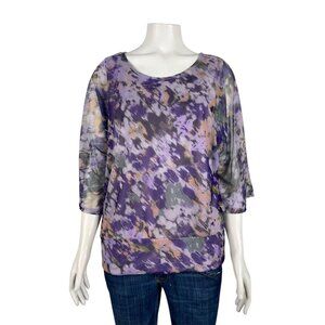 Chicos Purple Watercolor 3/4 Sleeve Double Layer Shirt 1 Medium Mesh Top Blouse