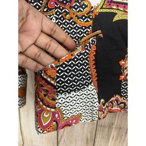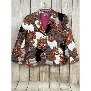 Chico's Quilted Blazer Jacket Button Front Sz 1 Med Orange Black Mixed Print