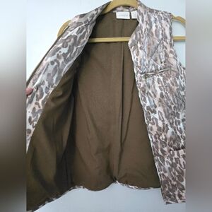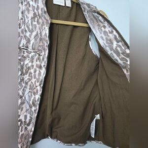 Chicos Quilted Metallic Vest Full Zip Brown Gold Animal Print Sz Small Leopard