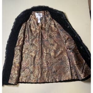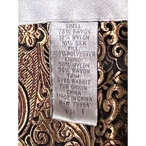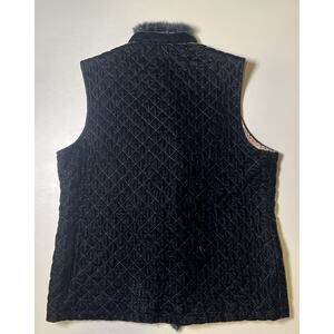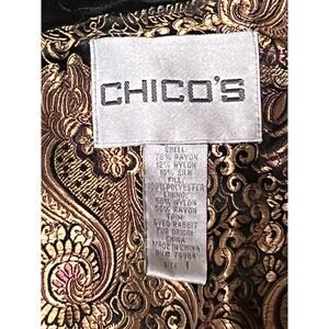 Chicos Quilted Velvet Like Vest W/ Rabbit Fur Trim Gold Paisley Lining Size 1
