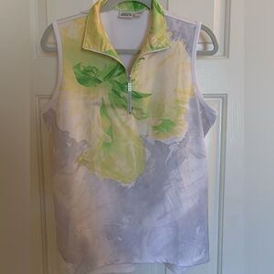 Chico’s RARE yellow, green, grey, white golf blouse lightweight sz 2 (12-14)