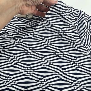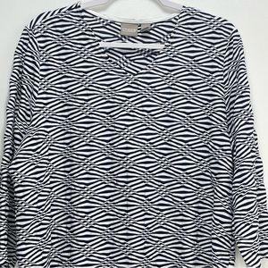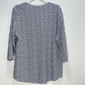 Chicos 3 womens XL Top texture geometric weave blue White Stripe 3/4 sleeeve.
