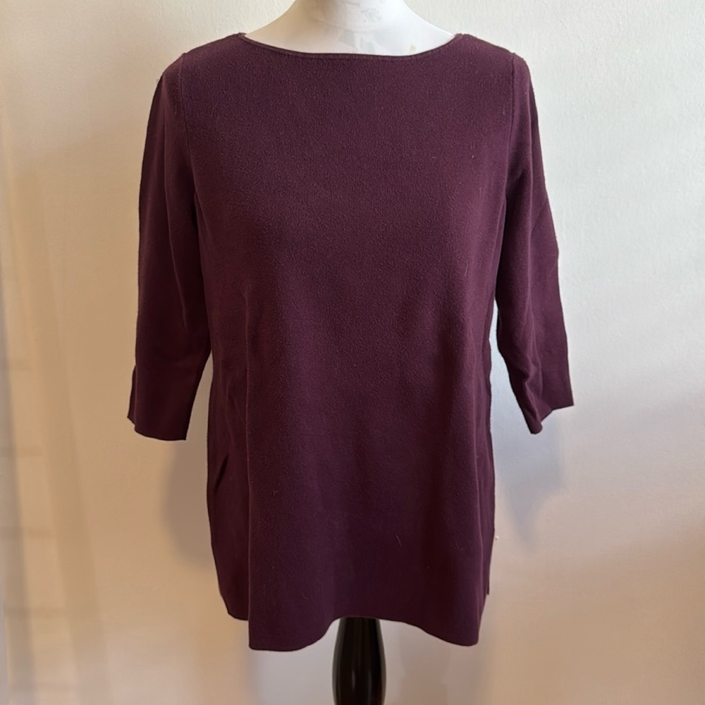 Chico’s Raspberry Ribbed Elbow Sleeve Ribbed Boat Neck Tunic Pullover