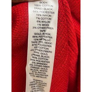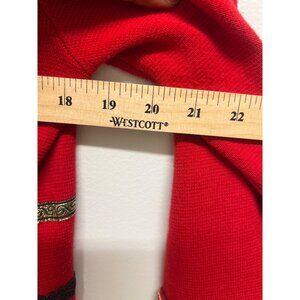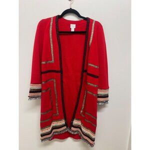 Chicos Reba Womens Red Cardigan With Tribal Embroidered Trim & Open Front