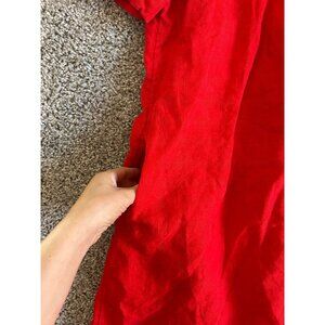 Chicos Red 100% Linen Shirt Dress Womens Sz 16 Short Sleeve Button-Up