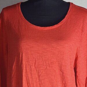 Chico's Red Revi Adjustable Roll Tab Sleeve Cotton Modal Hi Low the Ultimate Tee Size Chico 3 US XL 16....Great Color and Fabric on this Super Soft Pull on Tee...Adjustable Sleeves add a Fashion touch....like Brand New.....