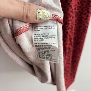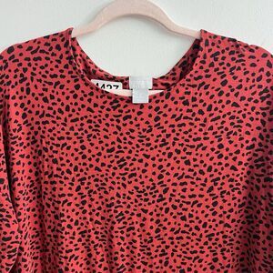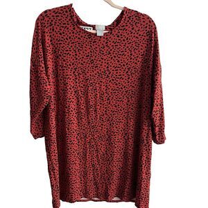 Chico’s Red Animal Print Tunic Top 2 Large 3/4 Sleeve Lagenlook Classic Stretchy