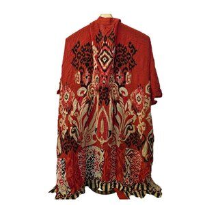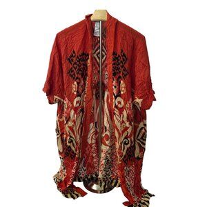Chicos Red & Black Abstract Open Front Kimono S/M Made In China Rayon Blend