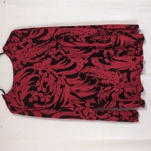 Chicos Red Black Leaf Print Wide Neck Tunic Blouse Size 3 - Extra Large