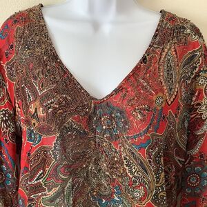 Chico’s Red Bohemian Hippie Whimsygoth Romantic Fairy Silk Paisley Blouse Size 1