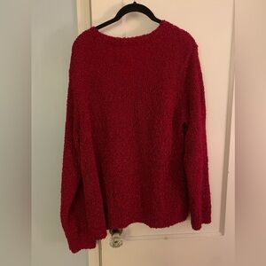 Chico’s size 3 which is equivalent to an XL. This vibrant red thick warm Chico's sweater features a distinctive textured knit, offering a rich visual and tactile appeal. It has a flattering V-neckline and long sleeves, making it a versatile piece for various occasions. The relaxed fit ensures comfort and effortless style. Perfect for adding a pop of color and cozy elegance to your wardrobe.