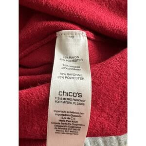 This Chico's red cowl neck sweater combines elegance with comfort. Lightweight and long-sleeved, perfect for any casual wardrobe.