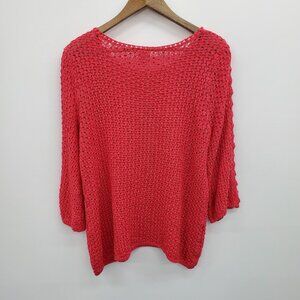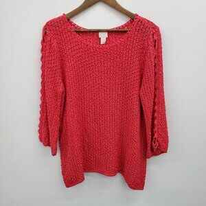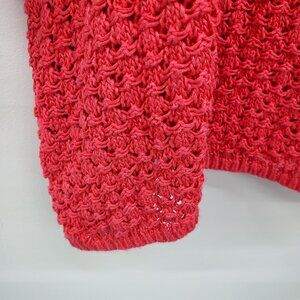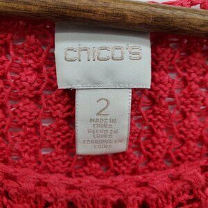 Chico's Red Crochet Sweater Womens Size 2 (L) Open Knit Peakaboo Sleeves Mature