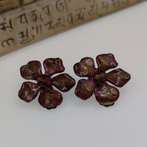 Elegant floral earrings with a deep red hue. Perfect for adding a touch of sophistication.