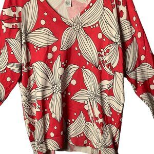 Chico's Red Floral V-Neck Sweater Silk Blend XL Size 3 Graphic Print