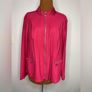 Chico's Red Full Zip Jacket Rayon Nylon Blend Mandarin Collar Size XL