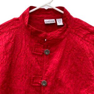 Chico’s Red Jacket Mandarin Style, Textured LS Button Up, Size 3 (XL or 16)