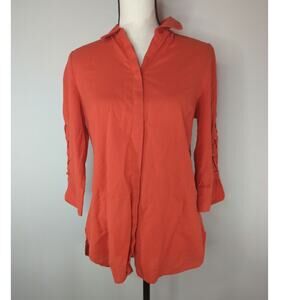 Chico's Red Lace Up 3/4 Sleeve Cotton Casual Career Button Top Womens 0 or Small