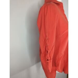 Chico's Red Lace Up Sleeve Cotton Casual Career Button Top Womens Small
