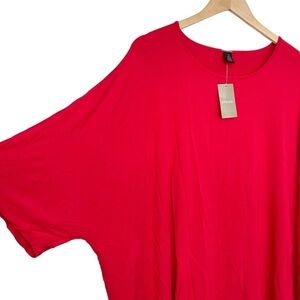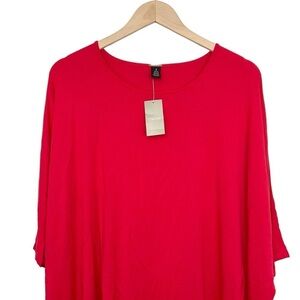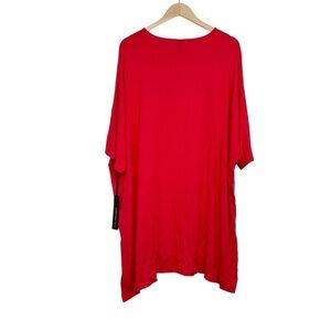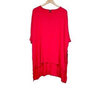 Chico's Red Oversized Boxy Top Stretchy Knit Short Sleeve High Low Size Small