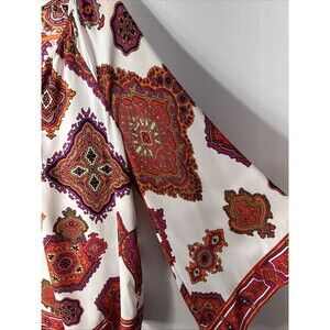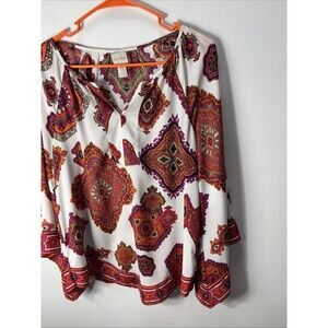 Chico's Red PRINT Boho Chic Abstract Tunic Top Blouse Big Flowy Sleeves Sz 0