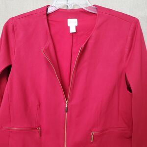 This is a Chico's Red Ponte Knit Full-Zip Gold-Tone Hardware Cape Jacket Size 3 (XL)