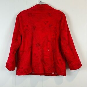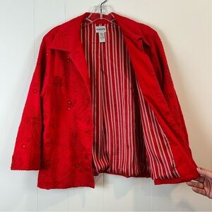 Chico’s Red Sequin Embroidered Button Front Lightweight Cotton Jacket HOST PICK!