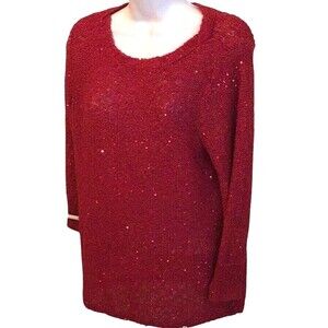 Chicos Red Sequin Shine Shirley Pullover Sweater, Sz XL Christmas Holiday Party