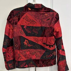 Chico's Red Silk Embroidered Long Sleeve Jacket Size 0